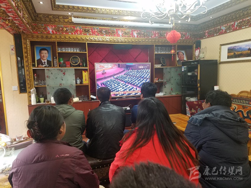 理塘藏族群眾在家中收看省黨代會(huì)開幕大會(huì)直播。