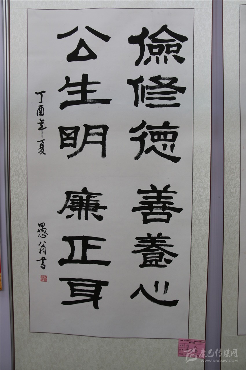 本網(wǎng)訊(記者 宋志勇 文/圖)“儉修德,善養(yǎng)心;公生明,廉正身?!薄爱?dāng)不住今天的誘惑將失去明天的幸福?!薄扒辶?/span>..........。隸書、行草、草書等一幅幅書法作品行云流水、飛揚(yáng)灑脫。這是9月15日,由州紀(jì)委、州委宣傳部共同主辦,州直工委、州文明辦協(xié)辦的我州“喜迎黨的十九大?弘揚(yáng)清風(fēng)正氣”主題廉政書畫展在康定劇場開展時,參與此次活動的作者以各自的方式創(chuàng)作出一件件主題鮮明的精美力作,既增強(qiáng)全社會反腐倡廉意識,也營造各族人民喜迎黨的十九大的濃厚氛圍。