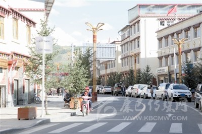 “前段時間,康定街上到處搭起了鋼架,掛起了安全網(wǎng),當(dāng)時還抱怨過路的不便,但隨著鋼架、安全網(wǎng)的撤離,一幢幢建筑都穿上了統(tǒng)一、整潔、特色的‘衣裳’,再加上干凈街道、有序車輛停放、盲道、路燈等添彩,情歌之城越來越美了。”康定市民周峰高興地說。