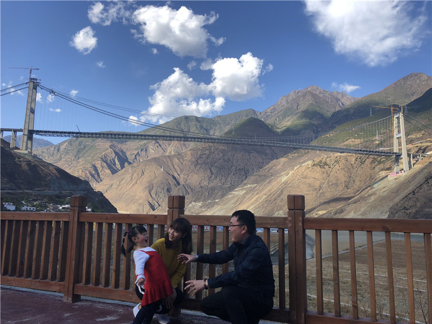 2014年大橋開(kāi)建,柏國(guó)勝夫婦就把家安在了大橋旁的工地,把辛勤汗水融入這片土地,如今3歲的小孩就在當(dāng)?shù)赜變簣@讀書(shū),成為地道的“瀘定人”。