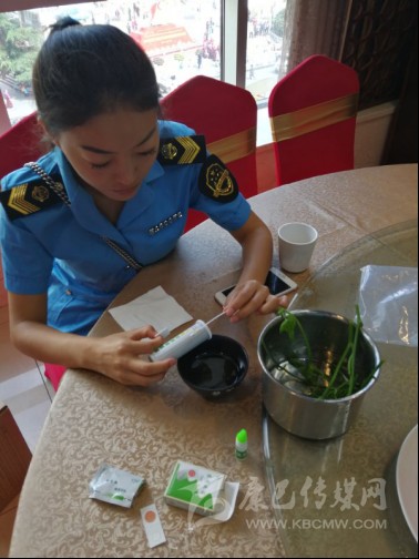執(zhí)法人員開(kāi)展食品快檢。