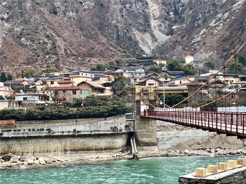 來到時濟鄉(xiāng),鐵索橋?qū)Π毒褪侨艏?,流淌的大渡河水從橋下穿過,若吉村內(nèi)正在進行民居風(fēng)貌升級改造,一些改造的民居外形已初顯。