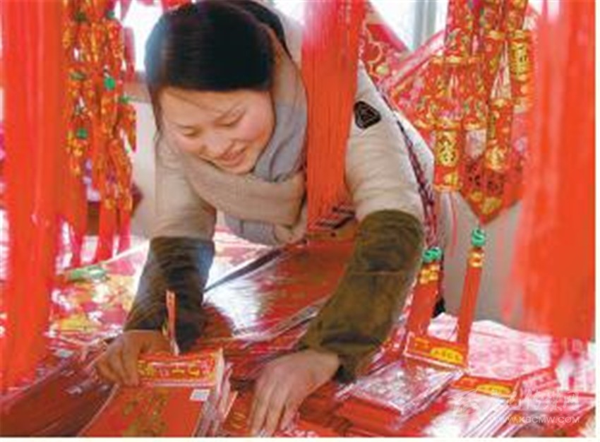 店主正在為顧客挑選春聯(lián)。