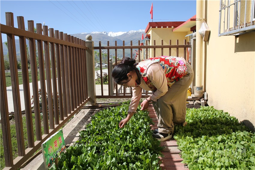 安置點村民在小菜園摘菜。