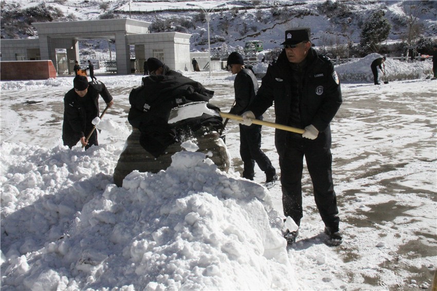 向?qū)W馬帶領干警清除積雪。