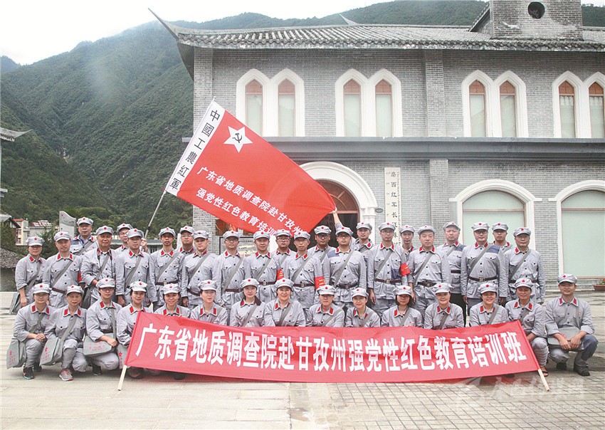 廣東地質調查院紅色黨性教育培訓班在磨西會議紀念館合影。