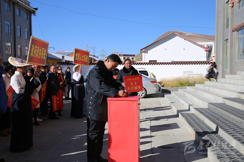 本網(wǎng)訊 “扶貧濟困、樂善好施、崇德向善,是中華民族的傳統(tǒng)美德,是構(gòu)建和諧社會、建設(shè)‘生態(tài)文明和諧’新石渠的要求。我們呼吁全縣各機關(guān)、企事業(yè)單位、社會團體及社會各界人士主動伸出援手,積極參與此次活動,奉獻一份愛心,貢獻一份力量……”10月17日上午10點,隨著縣委副書記扎西曲珍宣讀倡議書的聲音,由石渠縣脫貧攻堅辦、縣工青婦、縣紅十字協(xié)會聯(lián)合舉辦的主題捐贈活動在縣委政府辦公區(qū)正式拉開帷幕,社會各界愛心人士排成長隊,依次將承載滿滿愛心的善款鄭重放入募捐箱內(nèi)。
