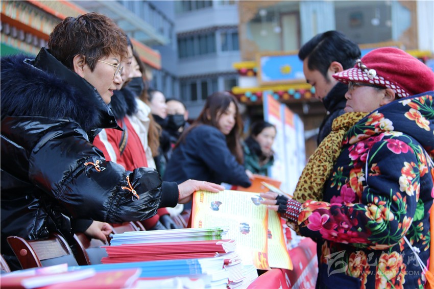 活動(dòng)現(xiàn)場(chǎng),工作人員為市民發(fā)放民族團(tuán)結(jié)進(jìn)步宣傳品、民族團(tuán)結(jié)進(jìn)步藏漢雙語(yǔ)宣傳教育讀本、宣傳畫(huà)、宣傳折頁(yè)、宣傳掛歷、《中國(guó)民族報(bào)》甘孜州民族團(tuán)結(jié)???、《民族》雜志甘孜州民族團(tuán)結(jié)??雀黝愋麄髻Y料9800余份(本),擺放展板30個(gè)。來(lái)自丹巴縣的仁真說(shuō):”現(xiàn)在的幸福生活離不開(kāi)偉大的中國(guó)共產(chǎn)黨的領(lǐng)導(dǎo),也離不開(kāi)全國(guó)各族人民共同團(tuán)結(jié)奮斗、共同繁榮發(fā)展。”