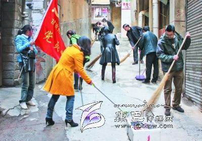3月28日,州國資委機(jī)關(guān)支部12名黨員走進(jìn)爐城街道光明社區(qū)開展“黨員義工日零距離”服務(wù)。經(jīng)過近兩個小時的集中清掃,該社區(qū)內(nèi)的垃圾點(diǎn)、水溝、小廣告張貼物等得到了全面清理,小區(qū)環(huán)境面貌煥然一新。圖為活動現(xiàn)場?!   ?nbsp;(委辦供稿)