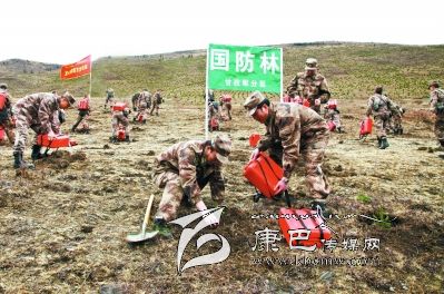 近年來(lái),甘孜軍分區(qū)官兵積極投身駐地生態(tài)文明建設(shè),廣泛開(kāi)展種植國(guó)防林活動(dòng),受到駐地群眾好評(píng)。圖為官兵正在植樹(shù)。(邢延超 攝影報(bào)道)