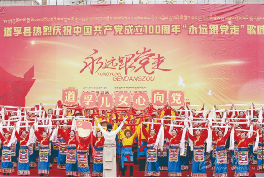 本網(wǎng)訊 “太陽啊霞光萬丈,雄鷹啊展翅飛翔,高原春光無限好,叫我怎能不歌唱……”6月26日,一曲《翻身農(nóng)奴把歌唱》的深情演唱,拉開了理塘縣慶祝中國共產(chǎn)黨成立100周年、2021年“高城兒女永遠跟黨走”千人大合唱活動的序幕。
