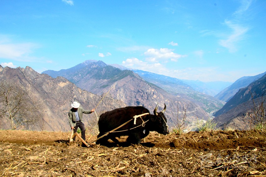 本網(wǎng)訊 清明時節(jié),我州各地農(nóng)民抓住時機(jī),有條不紊地投入到春耕、春播、春管等各項(xiàng)農(nóng)事生產(chǎn)當(dāng)中,田間地頭處處一派忙碌的景象。圖為丹巴縣章谷鎮(zhèn)白呷依村村民正在耕地。 楊全富 攝