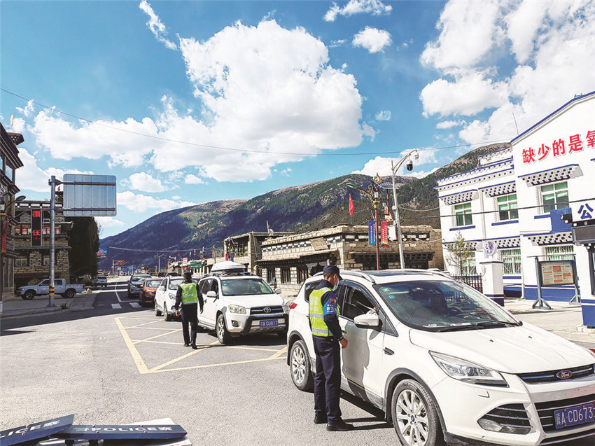 在巴塘縣公安局竹巴龍派出所,21名民輔警負責從西藏返川人員的查緝和疫情防控。每天對300多輛車和600余名旅客進行測溫、查健康碼、行程卡,協(xié)助開展核酸檢測等,他們不敢有半點馬虎。所長居勉表示,嚴格按照州、縣防控要求,大家對所有車輛進行編號排隊,實行首尾車制統(tǒng)一護送至縣城集中隔離點?!耙咔殛P(guān)鍵時刻絕對不能掉鏈子,干工作必須要認真負責?!本用阊a充說。