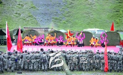 慰問演出在獨立營戰(zhàn)士的拉歌聲中徐徐拉開帷幕,隨后,《北京的金山上》、《我的士兵兄弟》等一首首耳熟能詳的歌曲逐一上演?!稓g歌踏舞》、《盛世歡歌》等舞蹈,時而歡快跳躍,時而雄壯豪邁,歌曲《說句心里話》唱出了官兵的思念之情,也唱出了官兵們保家衛(wèi)國的心聲。整場演出在舞蹈《康巴人》中落下帷幕。