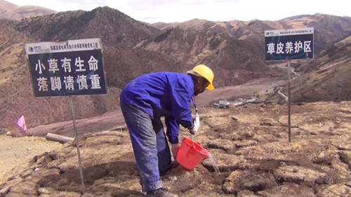 據(jù)介紹,施工前工作人員先將施工區(qū)域的原生草皮進(jìn)行剝離,移至他處并進(jìn)行養(yǎng)護(hù),待施工結(jié)束后,再將剝離的草皮移回原處進(jìn)行回鋪;對(duì)開挖造成地表植被破壞的地段播撒適合高原生長(zhǎng)的草籽,直到長(zhǎng)出綠草?,F(xiàn)場(chǎng)的施工人員介紹說,塔基開挖過程中,先將熟土(表土)、生土分開堆放,并采取隔離(鋪設(shè)棕墊等)、攔擋、覆蓋等措施,回填時(shí)先將生土回填,熟土最后置于表面,以保證植被的恢復(fù)。