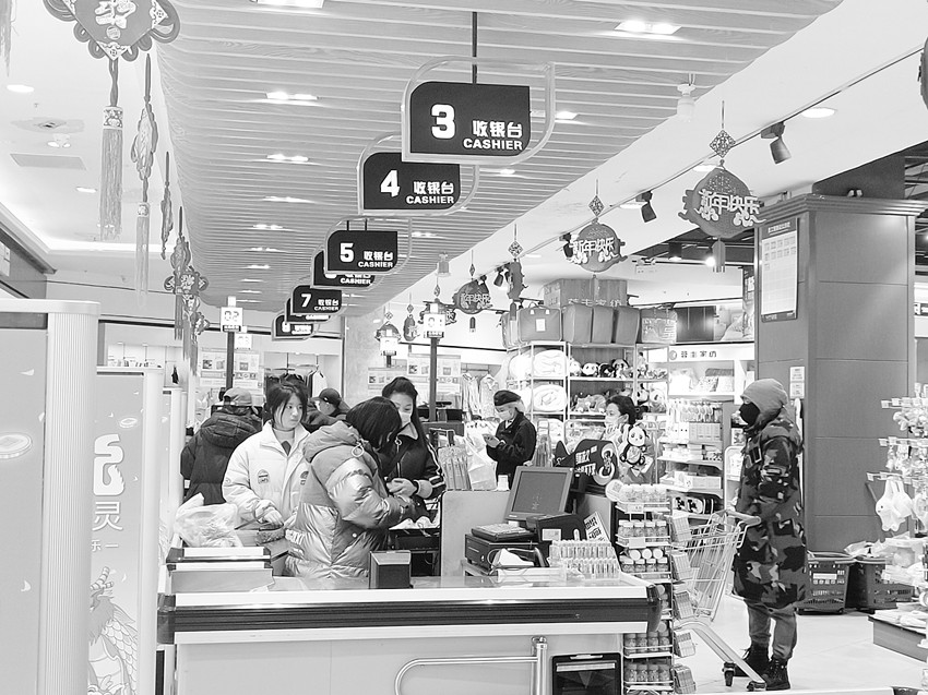 為迎接春節(jié)消費市場銷售高峰,各超市根據市民采買需求,將商品分類陳列,推出特價、促銷等活動,滿足市民的節(jié)日采購需求。