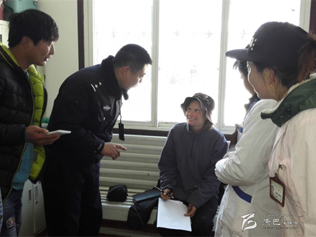 當日中午12時,開展完“結(jié)對認親”工作返回桑堆鎮(zhèn)派出所集合的國保大隊民警和看守所民警,忽然看見一名神色疲憊的外國女游客推著自行車,正在派出所門前與民警比劃著什么?有一定英語基礎的民警見狀后圍了上去,主動給派出所民警“解圍”。但是,她說的外語并不流暢,交流起來十分困難。經(jīng)過手勢比劃,加上多方英語對話,民警得知了她是比利時人,名叫ILONA,是一名資深的騎游愛好者,已騎自行車游覽了大半個中國,準備騎自行車回國。當日正從稻城縣騎自行車出發(fā)前往理塘縣,但到了桑堆鎮(zhèn)后感覺身體難受,體力不支,難以繼續(xù)堅持前行,就打算在當?shù)卣乙粋€衛(wèi)生院先檢查身體。比利時人平時主要講的是法語,所以英語講起來有點不順暢。當時,國保大隊民警由于有其他要事在身,不得不先行離開,看守所民警蘇適英語水平不錯,便主動帶她到鎮(zhèn)衛(wèi)生院看病。