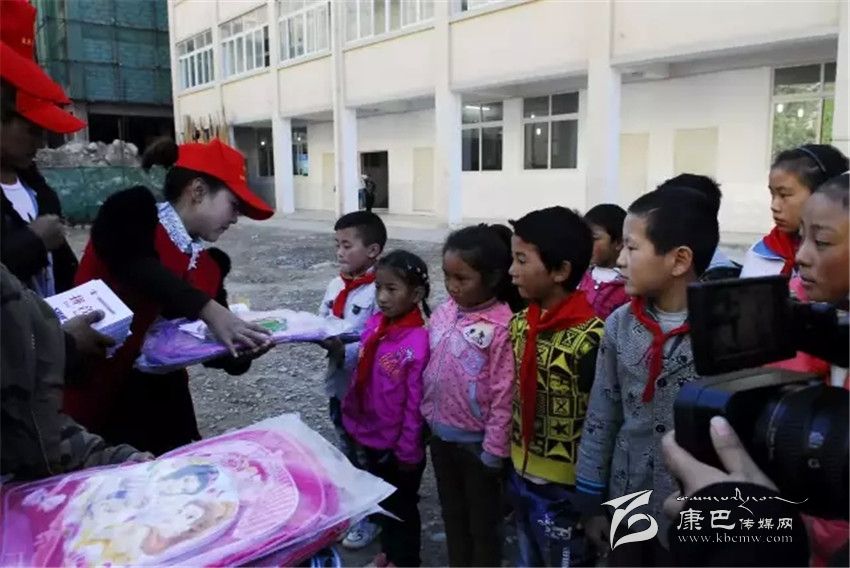 2014年9月1日德格縣青年志愿者服務(wù)隊雪梅等成員為貧困青少年送去學習包作為開學禮物。