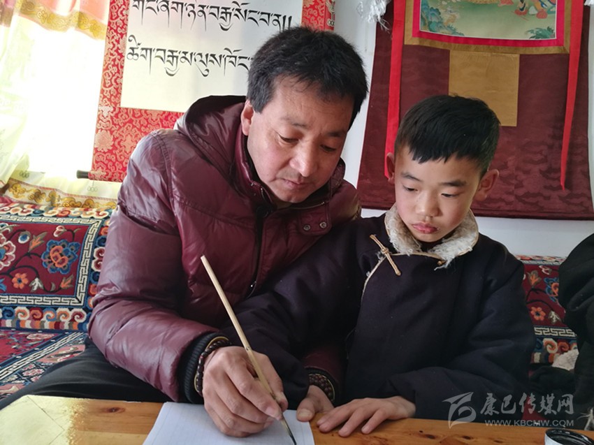 本網(wǎng)訊(余應(yīng)瓊 文/圖)“使用竹筆的時(shí)候拇指和食指握筆,要手腕用力,還要注意坐姿哦?!?/span>2月11日,元宵節(jié)這天,巴松鄧珠照例來到甘孜縣文化館,免費(fèi)為喜歡藏文書法的青少年授課,對(duì)小一點(diǎn)的孩子,還手把手地教起來。