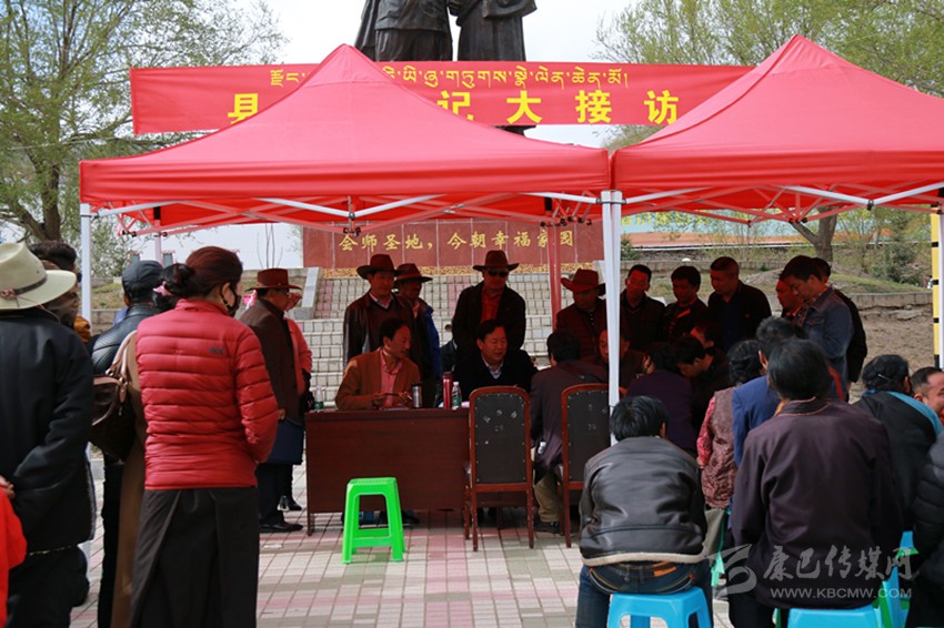 廣場(chǎng)上拉起了一條紅色橫幅,橫幅上書一行字“縣委書記大接訪”。紅色橫幅后面是開(kāi)國(guó)元?jiǎng)字斓潞蛺?ài)國(guó)活佛、大德高僧格達(dá)相互攙扶的雕像。雕像下,該縣各個(gè)局和部門的主要負(fù)責(zé)人都坐在塑料凳上,手里拿著筆記本,等著被該縣縣委書記雷建平“點(diǎn)名”。被點(diǎn)名的單位和負(fù)責(zé)人將和縣委書記一起,就群眾反映的問(wèn)題,解疑答惑,并當(dāng)場(chǎng)安排落實(shí)。為了多接訪一些群眾,兩天來(lái),午飯時(shí)間,該縣縣委書記和干部都在廣場(chǎng)泡面充饑。