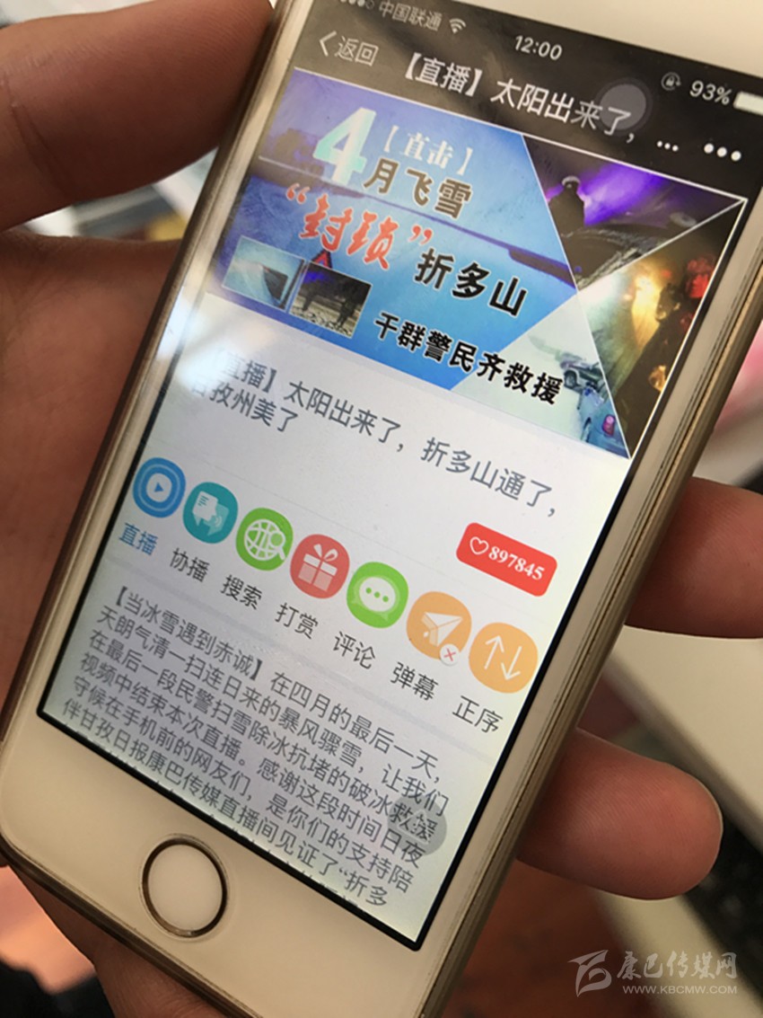 5月2日,隨著5.1小長假結(jié)束,甘孜日?qǐng)?bào)對(duì)折多山突降大雪、引發(fā)交通堵塞的立體式報(bào)道告一段落,作為突發(fā)災(zāi)害性天氣,甘孜日?qǐng)?bào)行動(dòng)迅速,傳統(tǒng)媒體、掌上直播、康巴微信、甘孜發(fā)布等全媒體齊上陣,掌上直播《4月飛雪“封鎖”折多山,干群警民齊救援》,以其即時(shí)消息、圖片、視頻等海量信息,引發(fā)點(diǎn)擊“狂潮”,不到兩個(gè)小時(shí),點(diǎn)擊量即超過35萬人次,至小長假結(jié)束,點(diǎn)擊量近百萬人次;康巴傳媒微信《4月飛雪,千人馳援》點(diǎn)擊量超12萬人次;甘孜日?qǐng)?bào)社對(duì)折多山大雪現(xiàn)場(chǎng)立體交叉式直播被新華社、中國新聞網(wǎng)、華西都市報(bào)封面新聞、網(wǎng)易新聞?lì)l道等州外媒體分別轉(zhuǎn)載或引用相關(guān)報(bào)道。我州應(yīng)急措施有力、有序,得到眾多媒體和網(wǎng)友紛紛點(diǎn)贊。州委常委、宣傳部長相洛稱贊甘孜日?qǐng)?bào)在這次直播中,行動(dòng)迅速、引導(dǎo)有力,既客觀報(bào)道了突發(fā)性災(zāi)害天氣對(duì)我州交通和旅游帶來的不利影響,更突出報(bào)道了我州和康定市采取的各項(xiàng)應(yīng)急措施,是一次媒體融合的有益嘗試。