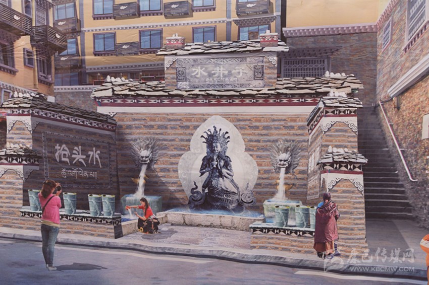 在現(xiàn)場,“水井子”原址已被圍擋封閉施工。根據(jù)設計,此次提升將融入“搶頭水”民族習俗,并結合互動性祈福、見證愛情的表現(xiàn)手法旨在將水井子打造成為康定城中的體驗式民俗景點。從外觀上看,內(nèi)街水井依然采用開放式外墻,正中神龕放置藏族水龍王塑像,兩邊塑造龍頭,以“二龍噴水”景觀作為新的出水方式,下方池邊則安放傳統(tǒng)背水姑娘雕塑。