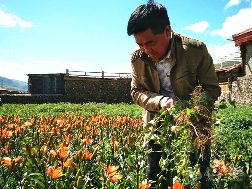 今天,面對(duì)傳統(tǒng)種植業(yè)和生產(chǎn)、生活方式的轉(zhuǎn)型提升,在種植青稞和大豆的土地上,蝦拉沱人直面現(xiàn)實(shí),轉(zhuǎn)變觀念,流轉(zhuǎn)土地,種下了美麗鮮艷的百合花。