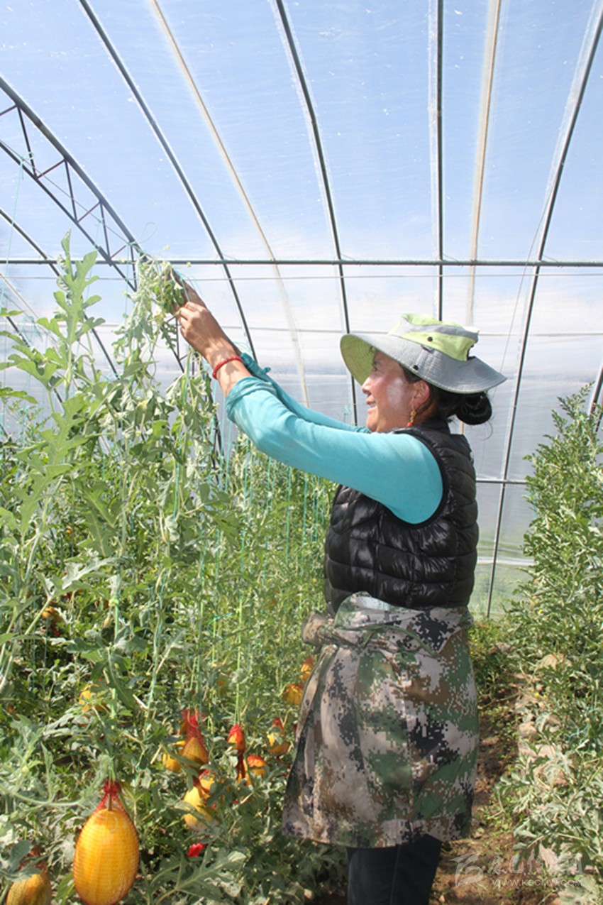 2018年1月下旬,雖然理塘已進入嚴(yán)冬,但蔬菜大棚里產(chǎn)的番茄、西瓜、草莓供不應(yīng)求,10多名當(dāng)?shù)剞r(nóng)牧民正在加緊育小麥苗?!敖衲辏鶕?jù)貧困村意愿,將繼續(xù)建好’飛地’蔬菜大棚,力爭讓園區(qū)大棚規(guī)模達(dá)到100個,實現(xiàn)從傳統(tǒng)農(nóng)業(yè)向現(xiàn)代設(shè)施農(nóng)業(yè)轉(zhuǎn)變的歷史性跨越,引領(lǐng)帶動當(dāng)?shù)刎毨罕娡ㄟ^不斷增強自我造血功能實現(xiàn)脫貧。”格勒多吉信心滿滿地說。