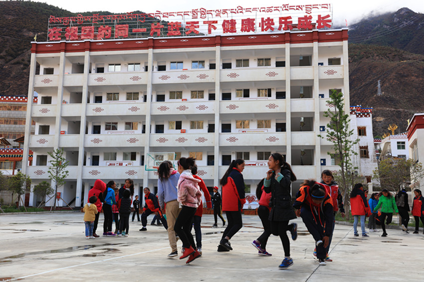 天氣晴好的周末,筆者在位于鄉(xiāng)城縣城郊的康南兒童福利院看到,入住福利院的孩子們有的在跳繩、有的在打籃球、有的在玩老鷹抓小雞,孩子們玩得興高采烈,每一張稚嫩的臉上都洋溢著快樂的笑容,操場上滿是歡聲笑語。