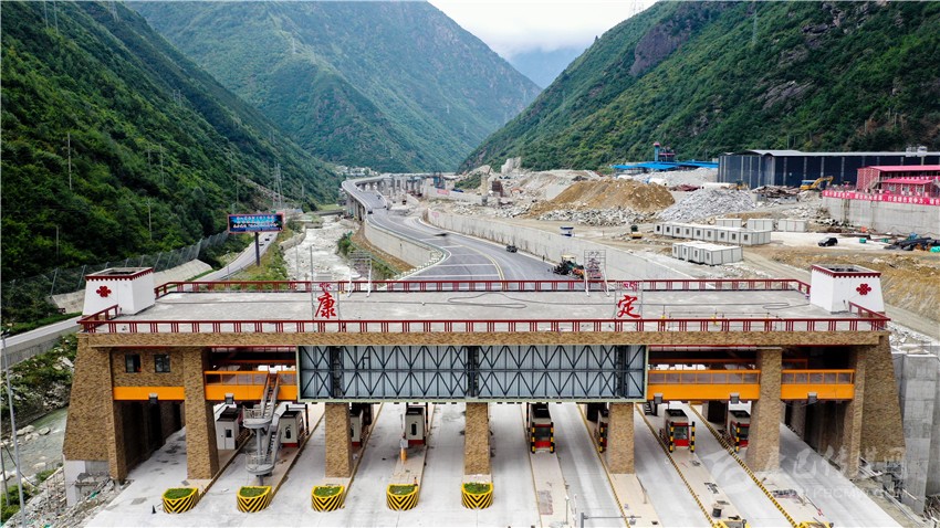 雅康高速康定小天都臨時(shí)收費(fèi)站至建設(shè)中的康定菜園子收費(fèi)站全景圖。