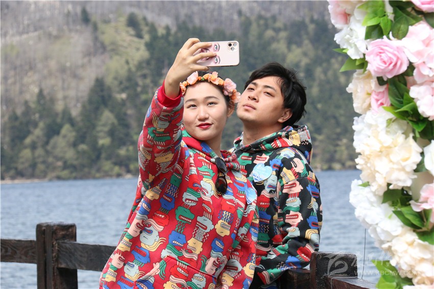 “今年已走過20年婚姻歲月?!眮碜猿啥嫉母姘渍哐詵|和王艷是通過網(wǎng)絡招募的情侶。他們說:“今天很榮幸來參加這個活動,木格措很美,在今天這個特殊時刻,來到這里打卡,將成為我們婚姻生活里美好的回憶?!?/p>