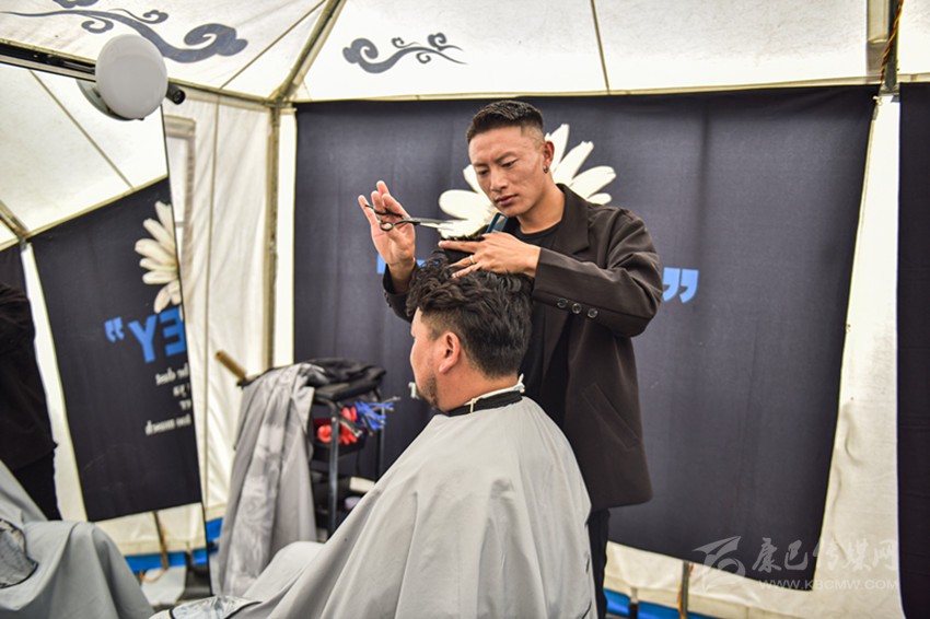 “有很多康巴漢子找我做造型,上個月,我把小帳篷換成了現(xiàn)在的大帳篷,進(jìn)行了一些簡單的裝飾,能容納更多人,大家剪頭發(fā)更方便了,游客也能看到更精致的康巴漢子?!鼻鸁羯V樽院赖匦χf。