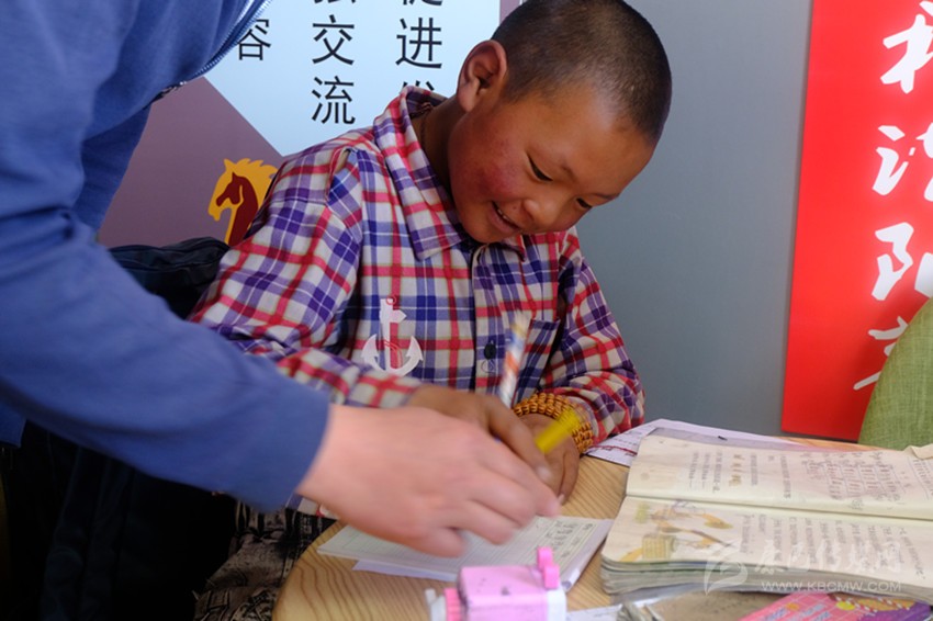 兩年前,小波家享受異地扶貧搬遷政策,隨父母從塔子鄉(xiāng)搬進了安康社區(qū)的新家,小波就近在色達二完小讀書,現(xiàn)在已經(jīng)是二年級的學(xué)生了。由于學(xué)習基礎(chǔ)薄弱,他每個周末都會到社區(qū)里的“小課堂”補習。