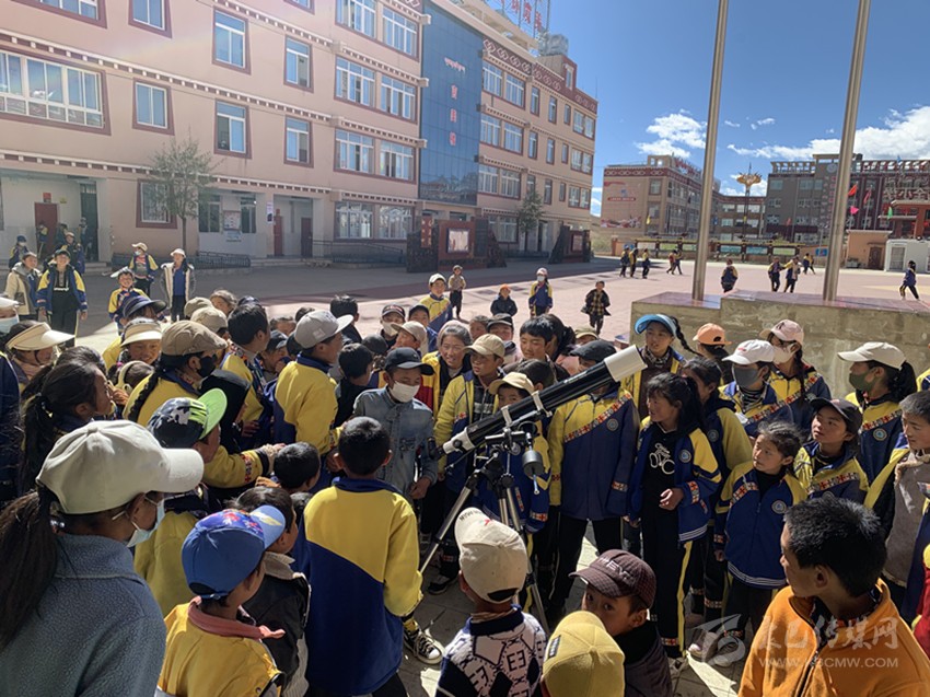 理塘縣第四完全小學(xué)是個(gè)牧區(qū)寄宿制學(xué)校,這也為孩子們夜晚觀測星空創(chuàng)造了機(jī)會(huì)?!疤煳纳缟鐔T每周有兩次利用天文望遠(yuǎn)鏡觀測的機(jī)會(huì)?!蓖踅险f,每次社員們在觀測時(shí),后面總會(huì)跟來一群低年級的學(xué)生。