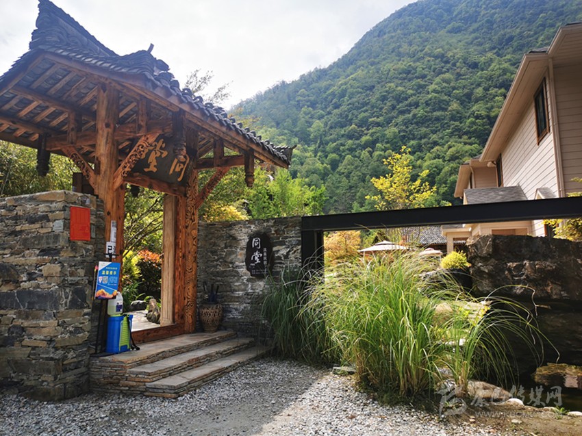 走過碎石鋪就的院壩,幾株狗尾巴草隨風搖曳,再穿過古韻十足的大門,同堂溫泉民宿的故事正式啟幕。