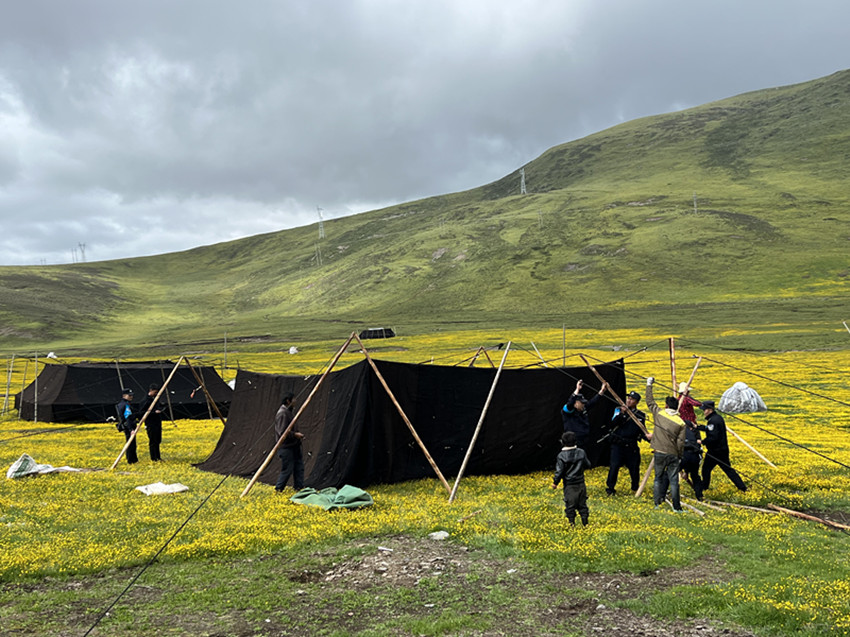 返程途中,高照洪和同事們還遇見安孜鄉(xiāng)門馬一、二村牧民正在冒雨搭建夏季牧場的黑帳篷,隨即下車幫助牧民一同搭建,并向牧民群眾宣講道路交通安全、森林草原防滅火、防汛期防護(hù)、嚴(yán)防“偷牛盜馬”及保護(hù)個人財產(chǎn)等方面的知識。