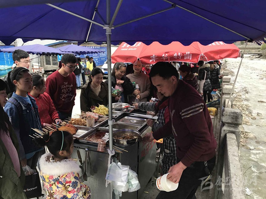 那么真實(shí)情況到底如何呢?7日,記者專門來到康定中學(xué)走訪調(diào)查。記者搭乘出租車前往學(xué)校,途中司機(jī)卻回應(yīng)“康中校門口那一段全是賣炸洋芋、炸雞腿的攤攤,車子根本開不過去,只能提前下車?!碑?dāng)記者步行過橋到達(dá)校門口路段時(shí),雜亂無序而又異常喧鬧的場面立刻映入眼簾。約摸十來家燒烤油炸“流動(dòng)攤點(diǎn)”上,商販們手中的烤具上下翻飛,幾十名身著“康定中學(xué)”校服的學(xué)生駐足其間,從校門出入的車輛不斷鳴笛避讓。烤面筋、炸土豆、烤雞腿,濃濃的油煙、各種調(diào)料混合的氣味、滋滋的油炸聲……儼然一副“美食街”的火爆景象。