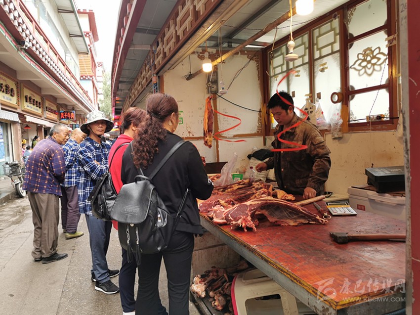 今年高考比去年提前了一個(gè)月,進(jìn)州的游客比去年來得更早,數(shù)量也更多。商販扎西阿達(dá)告訴記者,從五一節(jié)到現(xiàn)在,自己的牦牛肉都賣得不錯(cuò),每天都要?dú)⒁活^牦牛,生意好的話,下午三點(diǎn)鐘就可以賣光。