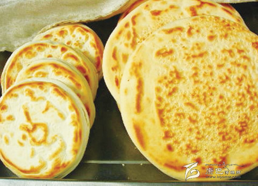 鍋盔藏語叫“貢加”,以不發(fā)酵的面粉,加入蘇打、水揉制成餅,用火炕烤制而成,實厚殼薄,柔中帶韌,越嚼越香。從外形上來看,爐城鍋盔似乎都是一樣的,老康定深諳其中口味上的差別,有椒鹽的、原味的、奶香的……鍋盔、酥油茶是最佳的早餐搭配,走訪外地親友,露營野炊更是少不了。