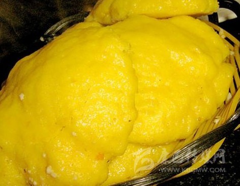 玉米饃是爐城平常人家常食的,就是許多做小生意開小攤鋪,常蒸食玉米饃。雅安人彭大春夫婦,早年曾在康定幫人干活,夫婦善做小吃。爐城大米昂貴,知爐城愛吃玉米,又愛吃“焦粑”(一種以面粉起酥肉餡炕餅的小吃)習(xí)慣,用金鉤鮮肉做餡,仿效“焦粑”的做法,用上等玉米面,創(chuàng)造出玉米面包金鉤炕餅,以其香、咸酥、脆味長誘人,食者排隊購買,風(fēng)行一時。