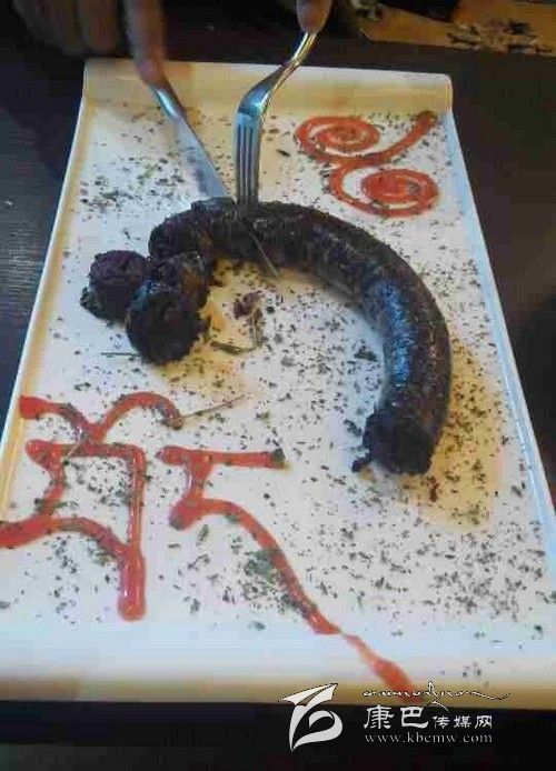 葩姆名卡的血腸被冠上了特色二字,特色再哪里?首先它的擺盤(pán)十分精致,一根血腸,旁邊利用番茄醬用藏文寫(xiě)上了“藏”字,還畫(huà)上了獨(dú)具藏族特色的繪畫(huà)。而在味覺(jué)上,它的特色也與眾不同。長(zhǎng)期做美食,記者有很敏銳的味蕾,當(dāng)?shù)谝豢谘c進(jìn)入口中,記者便察覺(jué)到所謂特色的奧秘。葩姆名卡的血腸中加入了一種記者叫不上名的香草,和中餐里的香料一樣,增加了血腸鮮香的口味。這種香草在西藏飯桌上廣泛被應(yīng)用,最常見(jiàn)的是普通百姓在煮土豆時(shí)都會(huì)使用到,它和薄荷葉非常相似,有一種淡淡的薄荷味,同時(shí)還有香菜的清香,不愧為“特色血腸”。當(dāng)記者打探該香草為什么名字?有什么功效時(shí)主廚師傅只是笑而不答,當(dāng)然記者明白這是特色的秘密,不過(guò)這“特色”的清香讓記者無(wú)法釋?xiě)?,必須贊一下哦?