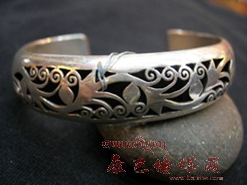 銀器可分四大類,生活用品、首飾、服裝飾品和宗教用具等。生活用品有銀碗、銀勺、銀筷、酒具、銀壺、銀盤等30余種;首飾有銀耳墜、耳環(huán)、發(fā)卡、銀簪、項鏈、戒指、手鐲、發(fā)箍等40余種;服裝飾品有銀飾刀具、銀盾、奶鉤、帶環(huán)、腰盤、腰牌、針線盒等大小規(guī)格20余類;宗教用具有酥油燈、凈水壺、平安頂、銀塔、銀帽、護身佛龕、鎖吶、喇叭等40余種,僅銀制用品已達上百種,而用銀點綴鑲飾的品種就更多,其中包括生產(chǎn)工具類,實為銀器之大觀。藏族銀器工藝品配套的加工材料有銅(白、黃、紫、紅)、鐵、木材、牛羊角、瑪瑙、珊瑚、松石等。銀器的工藝表現(xiàn)形式有高浮雕、淺浮雕、嵌絲、鏤空、鑲嵌等。生活用品中的銀碗,大多為木胎包銀外部鏨花,內部全部鑲銀,碗外側上部壁沿、碗底和圈足,甚至圓底部,均以密集的二方連續(xù)云紋、浪花紋、圓圈紋及線紋等鏨飾,碗外壁部有以龍、獅、虎、鷹、龍鳳等為主題的裝飾紋樣和幾何圖案飾邊的裝飾效果,圈足坡面以蓮花、牡丹花紋為主,非常精細。服裝飾品中的銀盾是青海海南環(huán)湖地區(qū)藏族女子喜愛的慣用服飾品