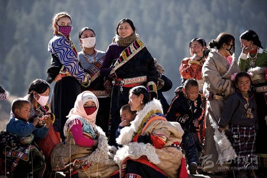 在農(nóng)區(qū),比較喜歡著便裝。男式分上衣和褲子兩件,上衣較短小,大襟,用料氆氌,大多為黑、白兩色。女式僅有上裝,對(duì)襟,用料氆氌,黑色,著裝時(shí)罩在袍外。