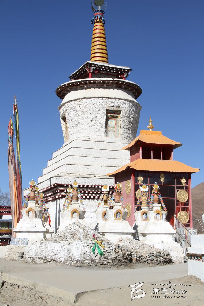 佛塔:佛塔的種類有很多種,形態(tài)各異,從塔的建材用料結構上有:泥塔、雕塔、土木結構塔、土石結構塔、磚石結構塔、木塔、銅塔、銀塔、玉塔、金塔,這些塔就是進入壇城的天梯,在甘孜州道孚普遍是土石結構塔。在縣城修的是“尊圣白塔”是康區(qū)第一白塔在村頭建佛塔叫吉祥塔;在房前房后修的佛塔叫驅災塔;還有一種佛塔是喇嘛和活佛圓寂后,為下一世繼續(xù)在該地生長而選擇吉祥之地建的佛塔叫涅塔。
