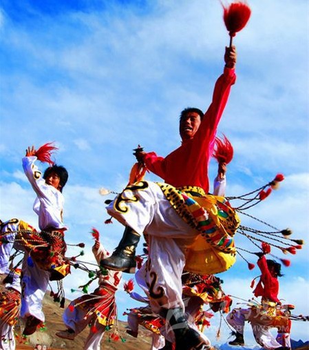 熱巴舞是由藏族"熱巴"藝人表演的一種舞蹈形式。熱巴是一種由賣藝為生的流浪藝人班子(一般以家庭為基本單位組成)表演的,以鈴鼓為主,融說唱、諧(歌舞)、雜技、氣功、熱巴劇于一體的綜合性藝術(shù)。它有一套相對固定的程序,由12個節(jié)目組成,全套演出需要5個小時。