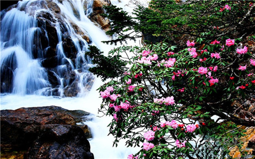杜鵑峽東連七色海,西接野人海,峽谷長6公里。峽谷中,溪澗時(shí)而奔流,時(shí)而舒緩,飛珠濺玉,溪岸兩邊林木蔥郁,尤以原始杜鵑林引人注目。這里的杜鵑花千姿百態(tài),艷麗多彩。有的花樹高達(dá)數(shù)丈,猶如臨空欲飛的散花仙女;有的矮不盈尺,恰如鋪展的裙裾;有的高居山崖,迎風(fēng)搖曳,頻頻向來賓致意;有的豎立溝谷,亭亭玉立,向游客含羞行禮;有的花大如海碗,有的花小似紐扣;紅、黃、藍(lán)、白、紫、似珊瑚,賽珍珠,一團(tuán)團(tuán),一簇簇,滿山是花的世界,滿峽是花的海洋,她匯聚了杜鵑花族中68個(gè)品種,從4月中旬先后開放至7月,花期長達(dá)4個(gè)月。