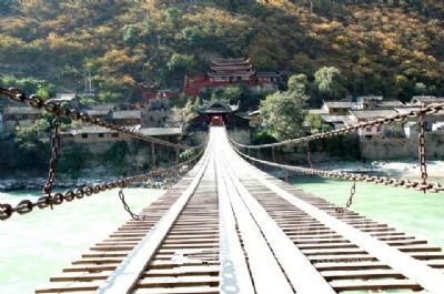 瀘定橋簡(jiǎn)介瀘定橋坐落在瀘定縣城大渡河上,為全國(guó)重點(diǎn)文物保護(hù)單位。該橋始建于清康熙44年,建成于45年(1706年)??滴跤P題定“瀘定橋”,并立御碑于橋頭。